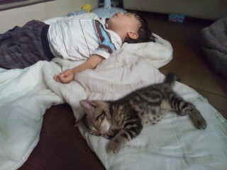 汗だくで帰って来たら補助席で次男寝てたorz